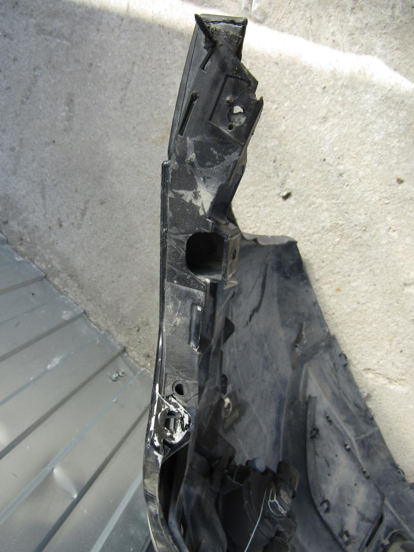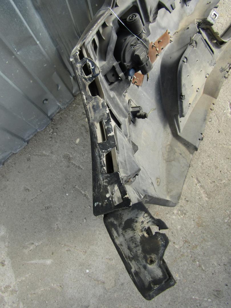 В сборе с птф, с решетками, с парктрониками, царапины, нет заглушки правой птф, дефект крепления правой птф, дефект крепления, нет 1 парктроника, дефект заглушки левой птф , вмятина, пробит, дефект решетки, шпатлеван