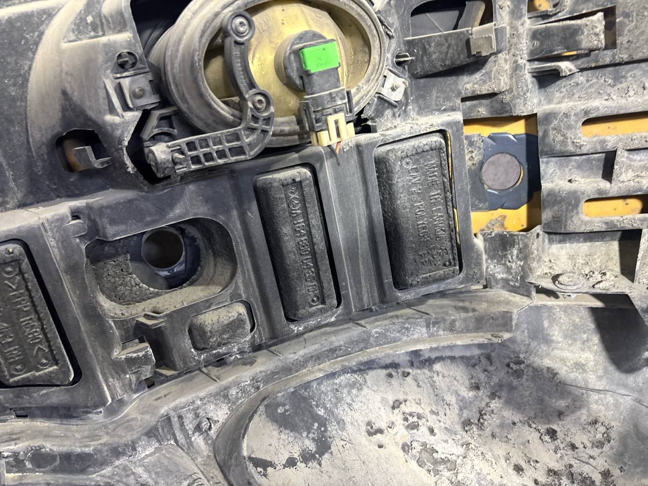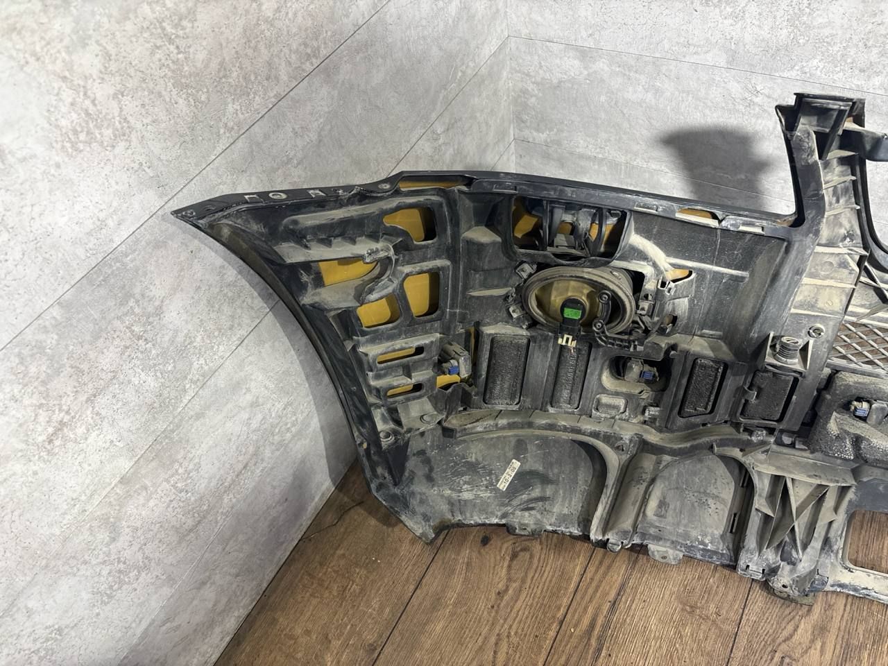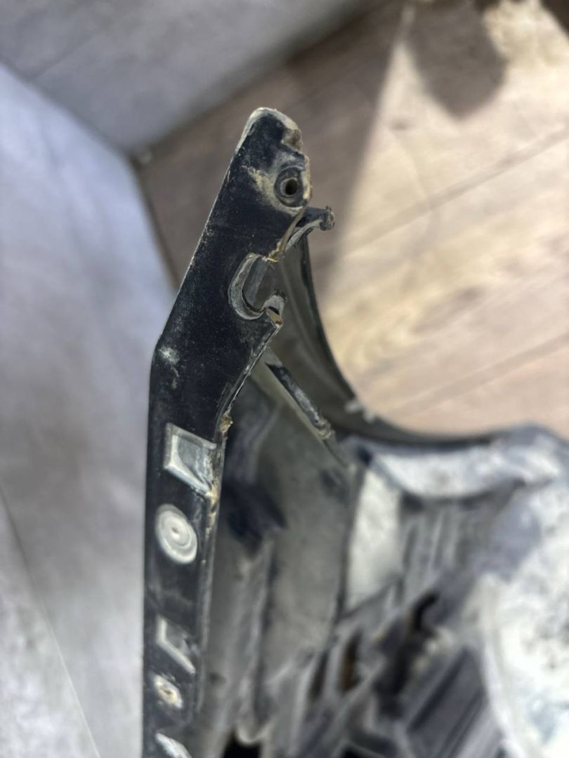 В сборе, с птф, с парктрониками, под омыватели, царапины, нет двух парктроников и выломаны под них крепления, небольшой дефект крепления