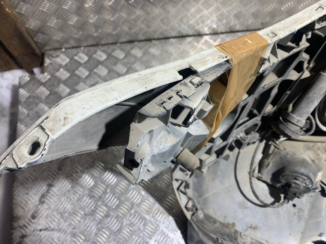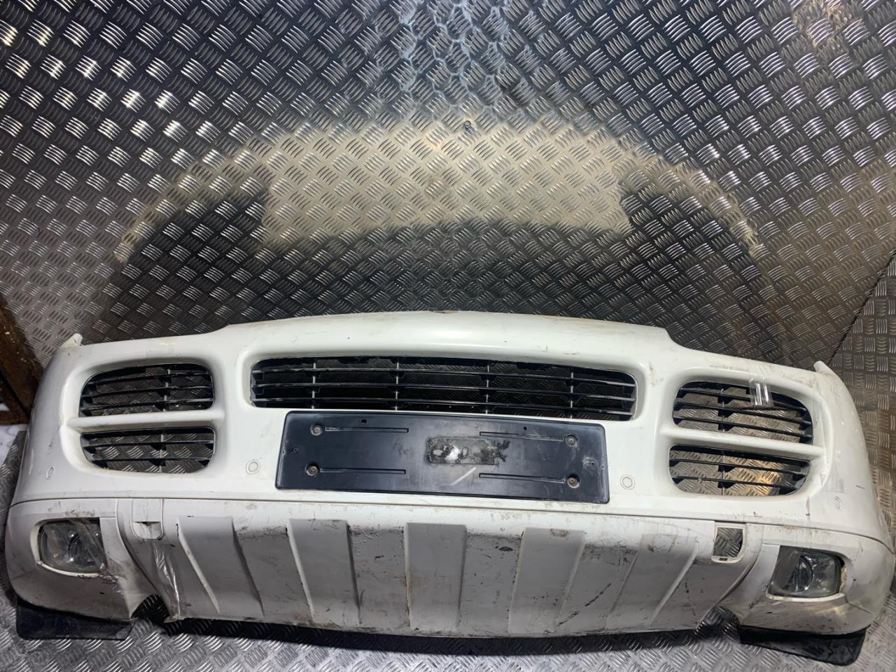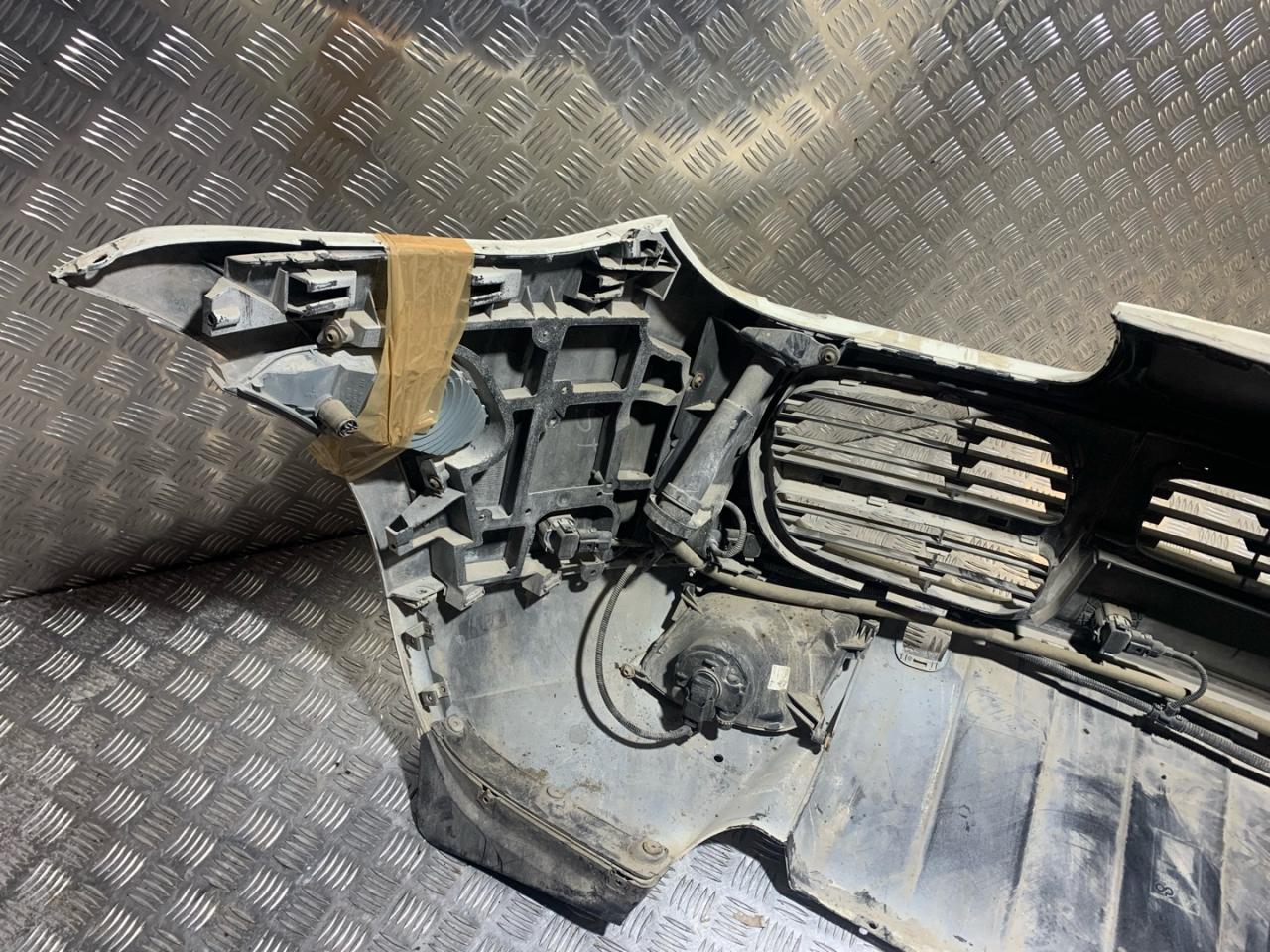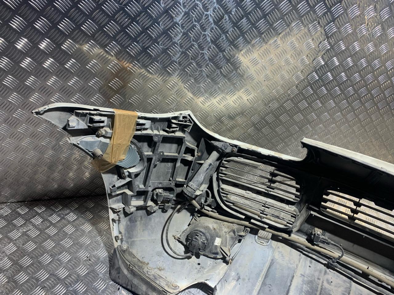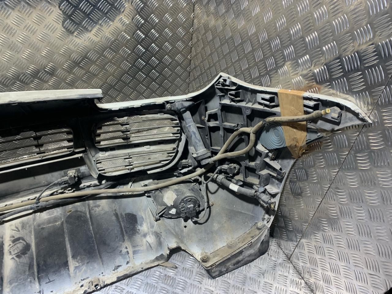 В сборе с птф, с решетками, с омывателями, с парктрониками, царапины, дефект крепления скелета, дефект крепления габаритов, нет заглушки под крюк, дефект решеток.
