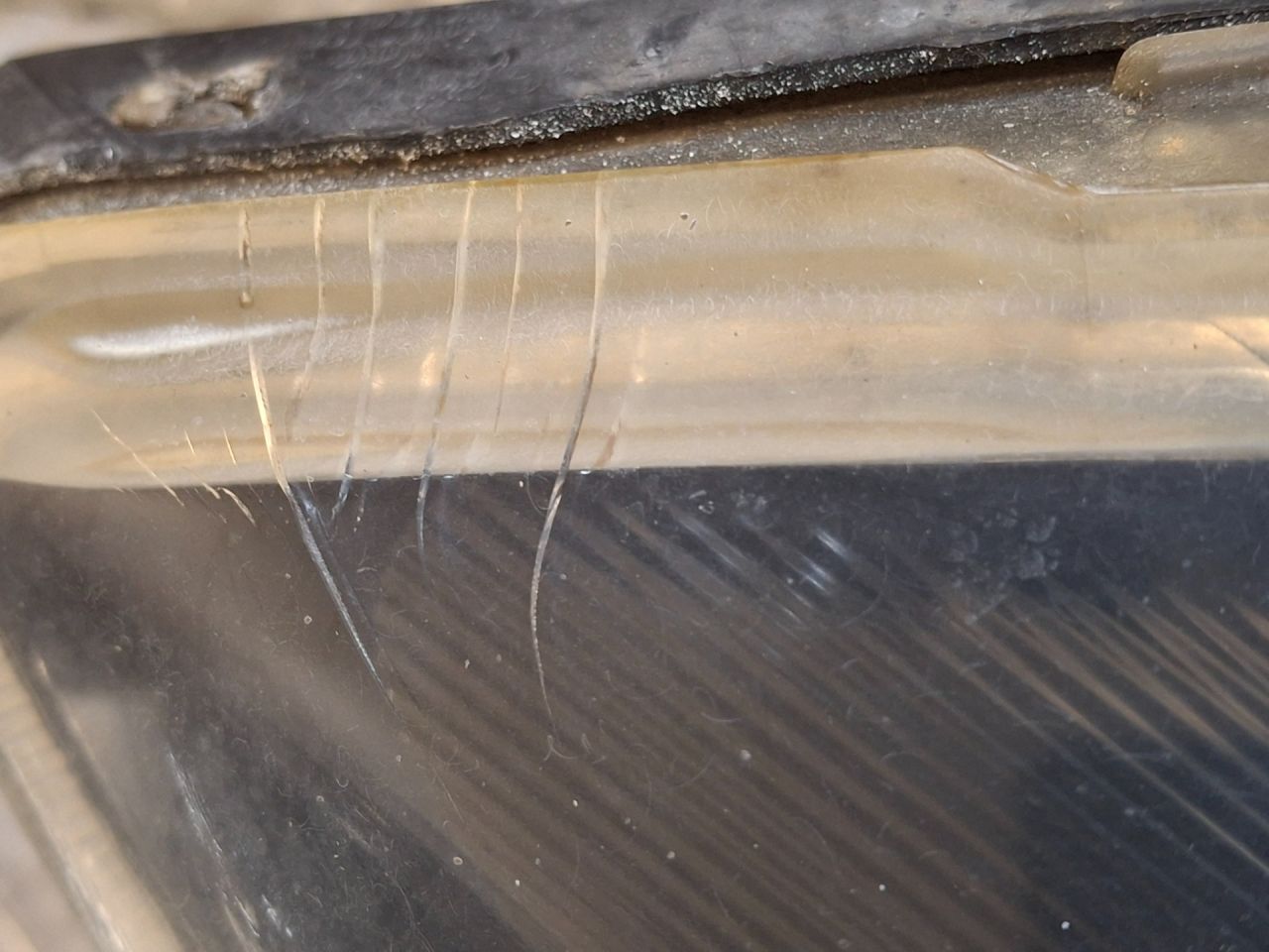 Линза, механический корректор, царапины, сильные микротрещины, небольшой дефект крепления
