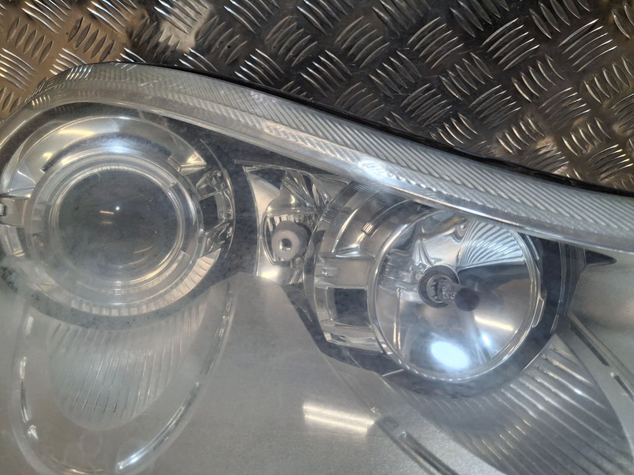 Линза, ксенон, адаптивный, царапины, микротрещины, дефект корпуса возле разъема, дефект проводки, вмятина на блоке, дефект отражателя