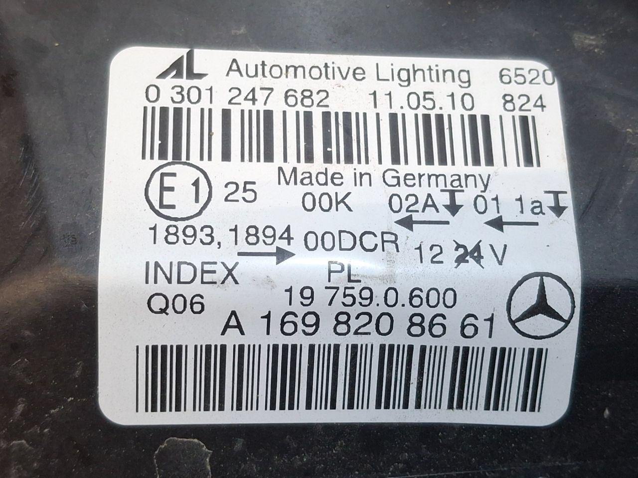 | Номер запчасти | A1698208661, 1698208661 |