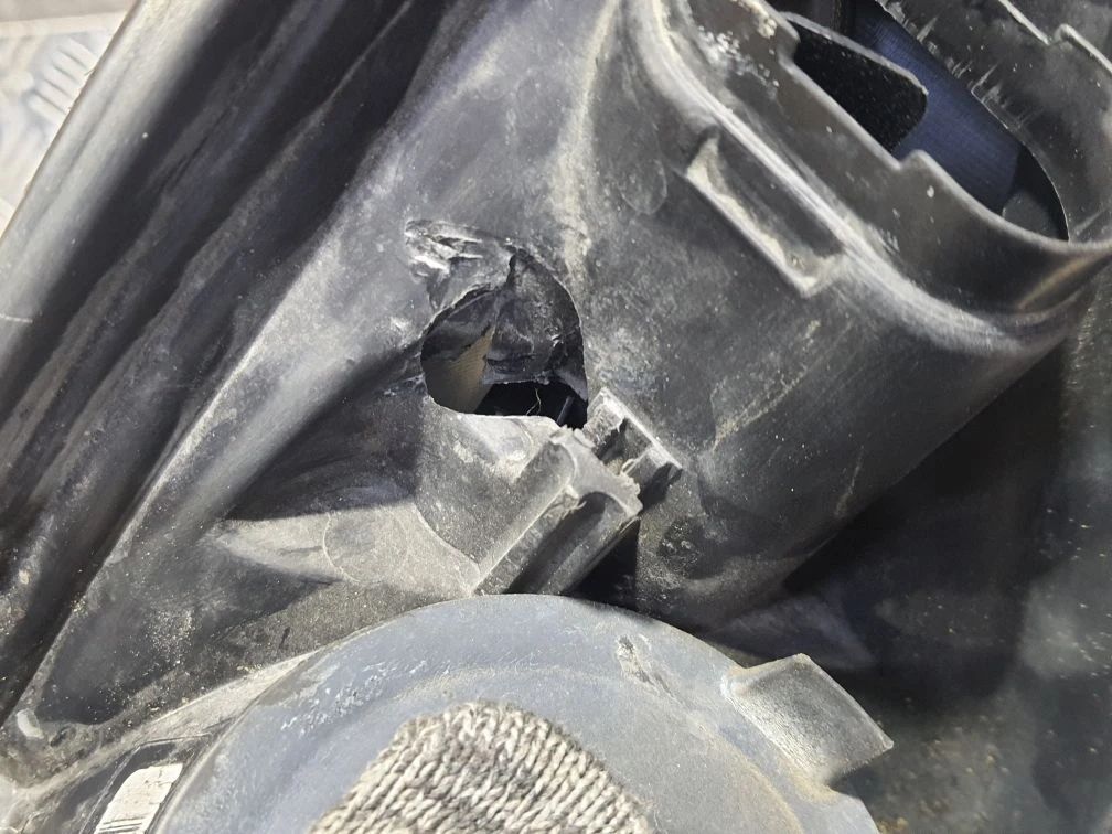 Белый отражатель, микротрещины, дефект крепления, дефект отражателя, небольшой дефект корпуса