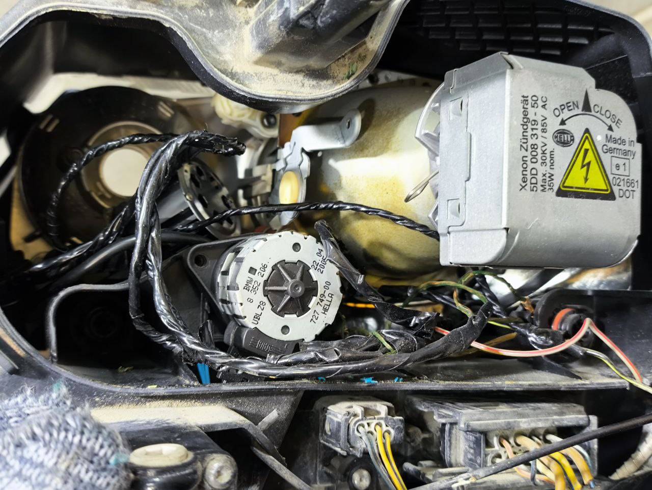 Линза, ксенон, блок розжига работает, черный отражатель, царапины, микротрещины, ремонт крепления, дефект проводки