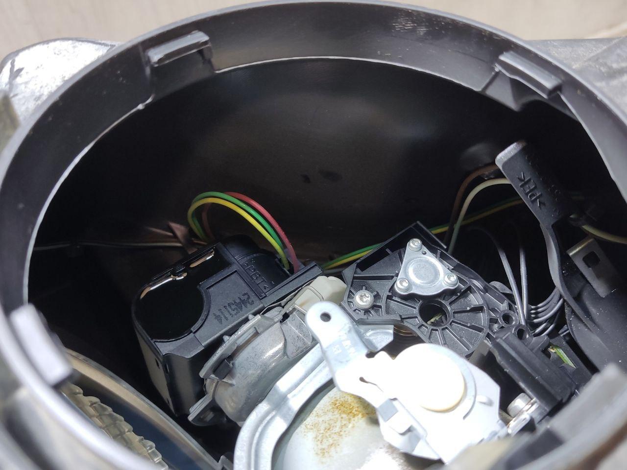 Линза, ксенон, адаптив, рабочий блок розжига, дефект стекла, дефект крепления, небольшой дефект отражателя, потрескалась проводки