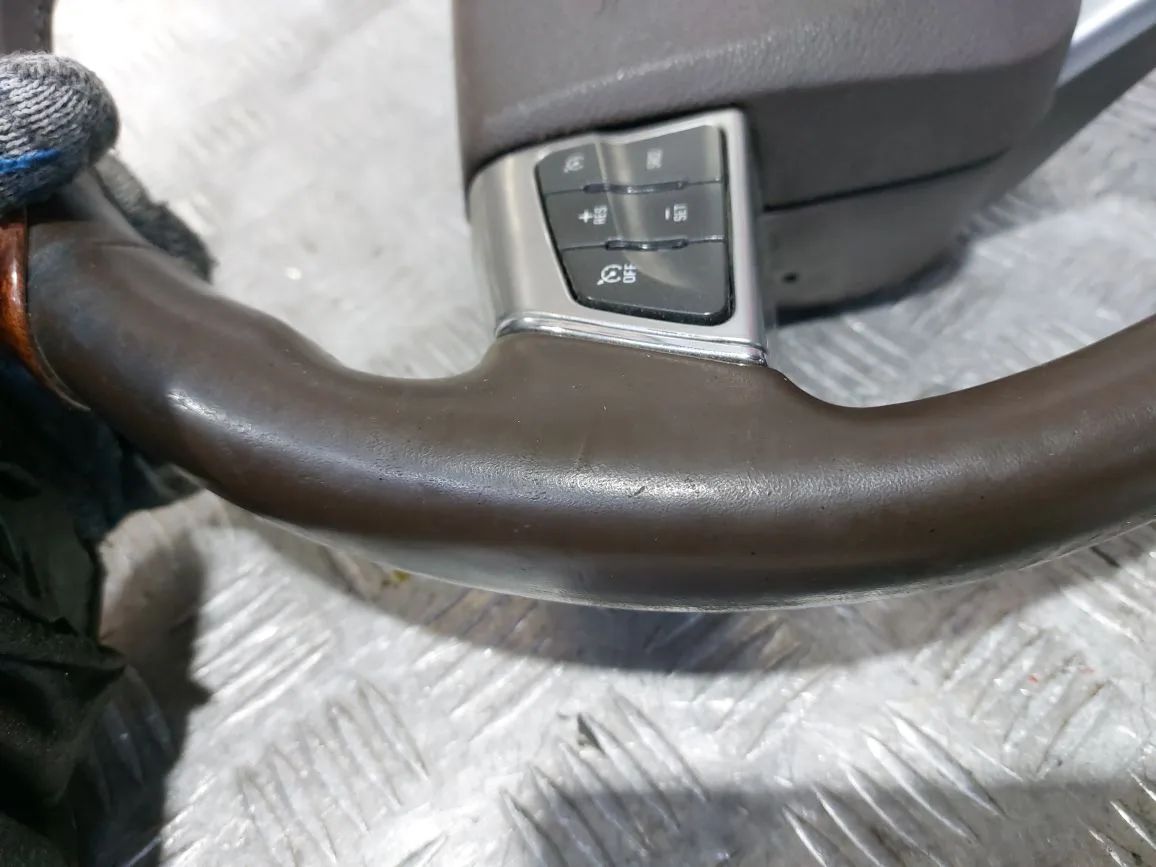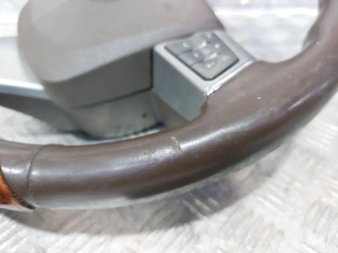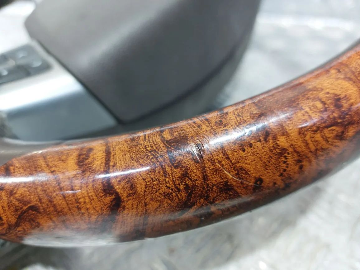 3-лучевой, мульти-руль, в сборе с подушкой, дерево, круиз-контроль, громкая связь, дефект кожи, потертости, царапины, дефект лака