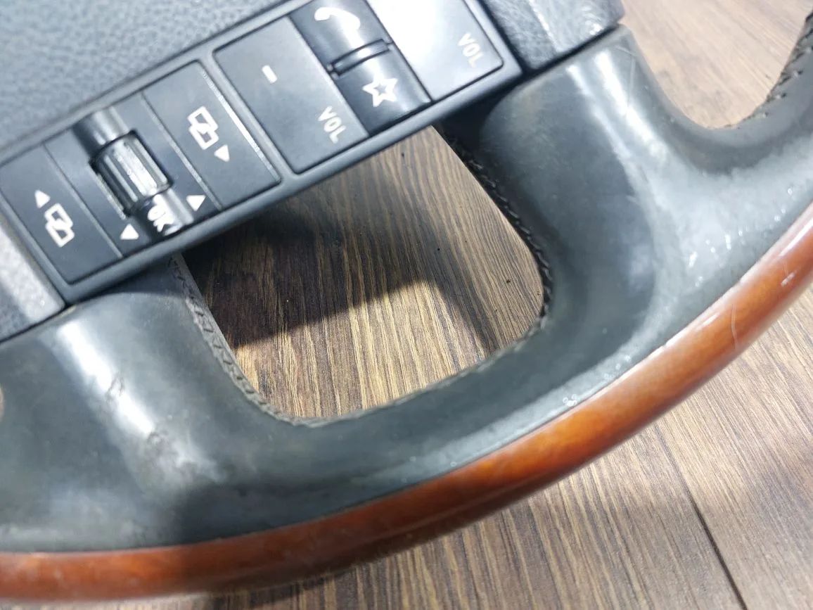 В сборе с подушкой, 4-х лучевой мультируль, круиз 6 кнопок, черная кожа, потертости, царапины, дефект лака